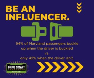 Seat belt usage has shown to be 45-50% effective in reducing crash fatalities.  In Maryland in 2024 there were 115 crash fatalities where the victim was known to not be buckled in.  With seat belt usage, 50-60 of those lives could have been saved. Setting an example as the driver has shown to be an effective way to encourage seat belt usage among passengers.